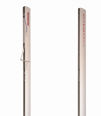 Professzionális alumínium röplabdaoszlopok speciális alumíniumprofilból, 70 x 120 mm. Földtárolókban tárolva. A feszítő eszköz az alumínium profil belsejében található. A felépítés lehetővé teszi a háló bármilyen magasságba állítását, a 106 - 250 cm tartományban, a röplabda mellett futballhoz, teniszhez és tollaslabdához is alkalmas. Az oszlopokon innovatív tekercselő mechanizmust használtak, amely lehetővé teszi a háló magasságának és feszültségének kényelmes beállítását a hátrameneti fékkel együtt. Az oszlopok úgy vannak kialakítva, hogy a hálót 6 ponton tartsák.