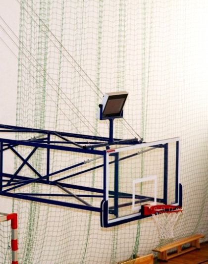 Kosárlabda konstrukció azzal a lehetőséggel, hogy felfelé hajtható a fal felé. A szerkezet távirányítása egy 220 V feszültségű villamos motor segítségével, P = 410 W. Acélprofilból készül, felületkezeléssel, az épület tartószerkezetére erősítve. A szerkezet biztonságát és stabilitását a biztonsági acél kötelek biztosítják. A szerkezet arra szolgál, hogy a kosárlabda táblát a faltól 200 és 550 cm távolságra kell helyezni. Megfelel az F.I.B.A .. A kosárlabda konstrukciót, beleértve az összes tartozékot, az EU szabványoknak megfelelően tanúsítják és tesztelik. Wszystkie konstrukcje mocujące do koszykówki posiadają certyfikat na zgodność z normami COBRABID BBC Biuro Badań i Certyfikacji w Warszawie.