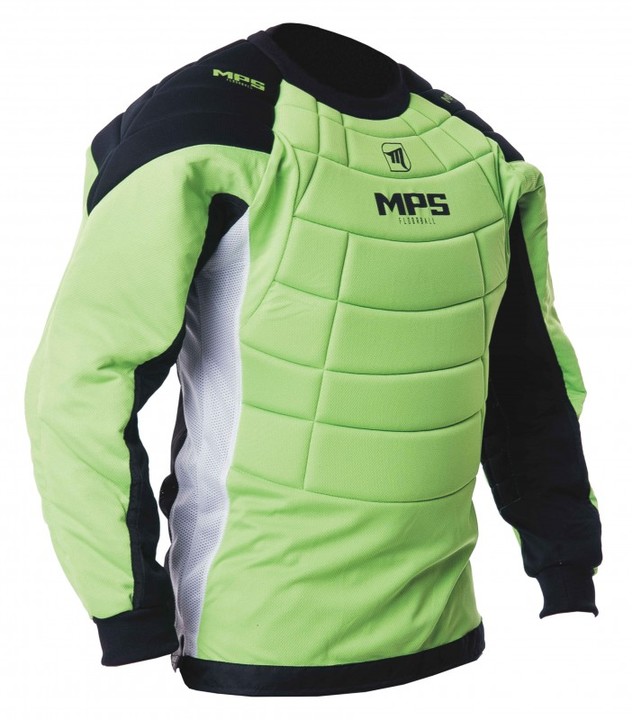 MPS-kapus labdarúgó-mez - egy az egyben kombináció egy mez, amely egyidejűleg kapcsolódik a mellényhez, amelyet elsősorban junioroknak és amatőr labdarúgó-kapusoknak terveztek. • Mivel ez a mellkas egyetlen védő része, számos elemmel van felszerelve a magas biztonság és kényelem érdekében. • A mellkasfeszítés kiterjed a kapus nadrágjára. Tehát védi az egész mellkasat a vállig. • A hüvely erősítéssel van ellátva a könyök területén. • A mez hátulján és oldalán háló van a jobb szellőzés érdekében. • Ez a mez alkalmas junior, amatőr kapusok és iskolák számára is, akiknek jó áron szükségesek funkcionális felszerelésre. Összetétel: 100% poliészter poliuretánhabbal megerősítve. Méretek: S, M, L, XL, XXL