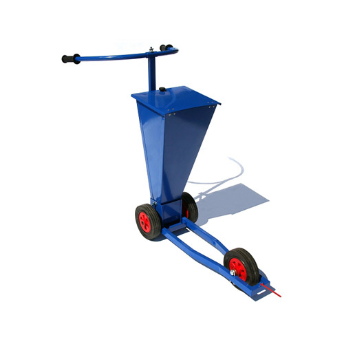 Fém kocsi játszótér vonalak sötétkék mintázatú megjelölésére. Három kerékkel és széles futófelülettel van felszerelve, amely lehetővé teszi a könnyű mozgást a terepen. A kocsi úgy állítható be, hogy vonalvastagsága 5 vagy 10 cm legyen. Kréta és mész felhasználására alkalmas. Méretek: - Magasság: 90 cm - Hossz: 120 cm