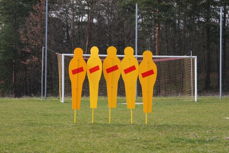 Kocsi egy edzőfal szállításához, amely fal alapként is használható, különösen olyan kemény felületeken, ahol nem lehet sziluetteket a talajhoz rögzíteni. A kocsi négy kerékkel és fogantyúval rendelkezik, lehetővé téve az edzőfal kényelmes kezelését és mozgatását.