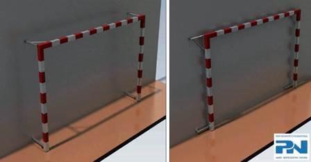 Professzionális kézilabda célok falra szerelhető, alumíniumból vagy acélból, a falhoz való behajtás lehetőségével.