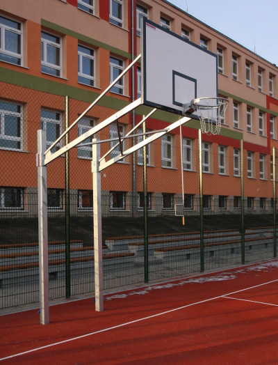 Két oszlopos kosárlabda konstrukció, kültéri játékra tervezve (gyermekek, iskolák és városi játszóterek). A teljes szerkezet melegen horganyzott, amely védelmet nyújt a korrózió ellen. A szerkezet lehetővé teszi a karika bármilyen magasságban történő beállítását. A szerkezet szilárdan van felszerelve a földszinten. Kar hossza: 1,2 m (1,4 m, 1,6 m és 2,2 m hosszú fegyvereket is kínálunk) A deszka mérete: 105x180 cm. Minden konstrukció tanúsított és tesztelt, és megfelel az EU szabványoknak. Lehetséges epoxi vagy rácsos lemezeket és különféle típusú felnikeket horganyzott kivitelben rögzíteni a szerkezethez. Lehetőség van olyan magasság-beállító mechanizmus felszerelésére is, amely lehetővé teszi az asztal magasságának sima megváltoztatását anélkül, hogy a szerkezet gémét kellene beállítani.