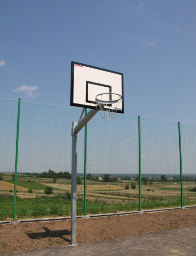 Kültéri játékra tervezett kosárlabda konstrukció (gyermek-, iskolai és városi játszóterek). A teljes szerkezet melegen horganyzott, amely védelmet nyújt a korrózió ellen. A szerkezet lehetővé teszi a karika bármilyen magasságban történő beállítását. A szerkezetet egy szerelődobozba szereljük, amelyet a játszótér aljába helyezünk. Kar hossza: 1,2 m (1,4 és 1,6 m hosszú karokat is kínálunk) A deszka mérete: 105x180 cm. Minden konstrukció tanúsított és tesztelt. Megfelelnek az EU előírásainak. Epoxi vagy hálótáblák és különféle típusú karikák horganyzott változatban rögzíthetők a szerkezethez. Lehetőség van olyan magasság-beállító mechanizmus felszerelésére is, amely lehetővé teszi a magasság sima megváltoztatását anélkül, hogy a szerkezet gémét kellene beállítani.