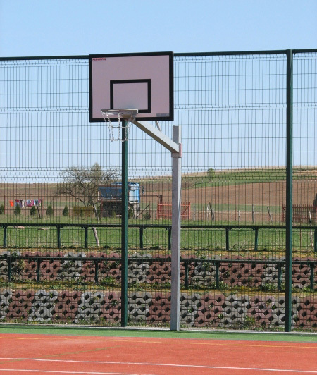 Kültéri játékra tervezett kosárlabda konstrukció (gyermek-, iskolai és városi játszóterek). A teljes szerkezet melegen horganyzott, amely védelmet nyújt a korrózió ellen. A szerkezet lehetővé teszi a karika bármilyen magasságban történő beállítását. A szerkezet szilárdan van felszerelve a földszinten. Kar hossza: 1,2 m (1,4 és 1,6 m hosszú karokat is kínálunk) A deszka mérete: 105x180 cm. Minden konstrukció tanúsított és tesztelt. Megfelelnek az EU előírásainak. Epoxi vagy hálótáblák és különféle típusú karikák horganyzott változatban rögzíthetők a szerkezethez. Lehetőség van olyan magasság-beállító mechanizmus felszerelésére is, amely lehetővé teszi az asztal magasságának sima megváltoztatását anélkül, hogy a szerkezet gémét kellene beállítani.