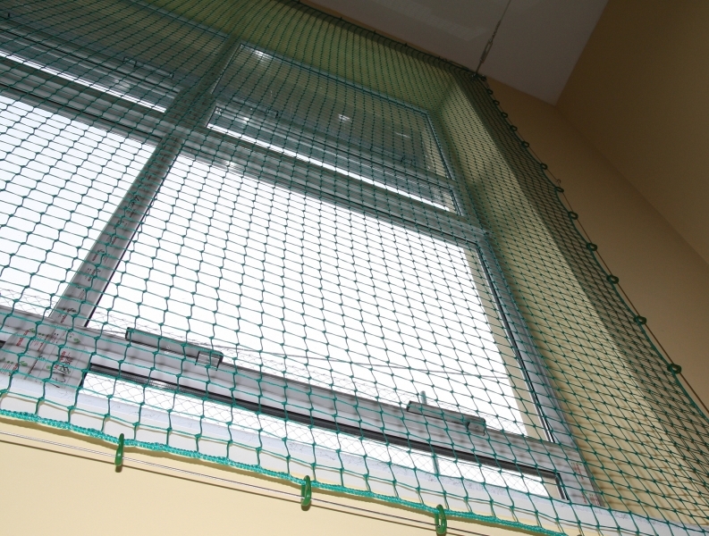 Polipropilénből készült védőháló, szembősége 120 x 120 mm, vastagsága 2, 3, 3,5 mm. Szín zöld, fehér, fekete, kék. Nem éghető anyag (tanúsítvány), PP vagy PE. Védőhálók tornatermekhez, sportcsarnokokhoz, játszóterekhez és sportpályákhoz. A védőhálókat beltéren és kültéren is lehet használni. Védőhálók beszerelési és szerelési elemeit is kínáljuk.