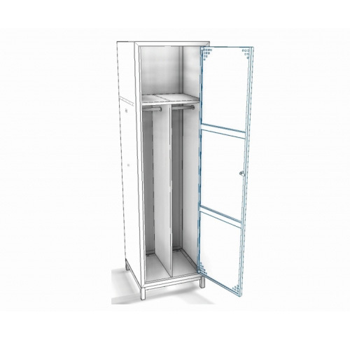 Kiváló minőségű, kétkamrás, fém szekrény. A termék kiválóan alkalmas öltözőkben, sportlétesítményekben, iskolákban, gyártóüzemekben és raktárakban. A szekrénynek két kamrája van polcokkal. A szekrény zárható, amely biztosítja a dolgok biztonságos tárolását. Méretek (cm): Szélesség: 50 Mélység: 49 Magasság: 180 színek: - RAL 7035 - szürke, RAL 5010 - kék. - RAL 6029 - zöld RAL 6005 - sötétzöld, RAL 2004 - piros (narancs) - RAL 9006 - alumínium, RAL 9005 - fekete, RAL 9010 - fehér, RAL 1023 - sárga, RAL 8011 - barna Egyéb RAL színek - 5% felár. Felár az ajtó színének megváltoztatásáért 7%.