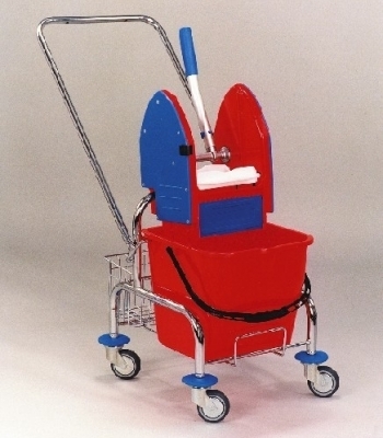 Hordozható tisztító kocsi, krómozott (20 l vödör, kosár, csavarókészülék).